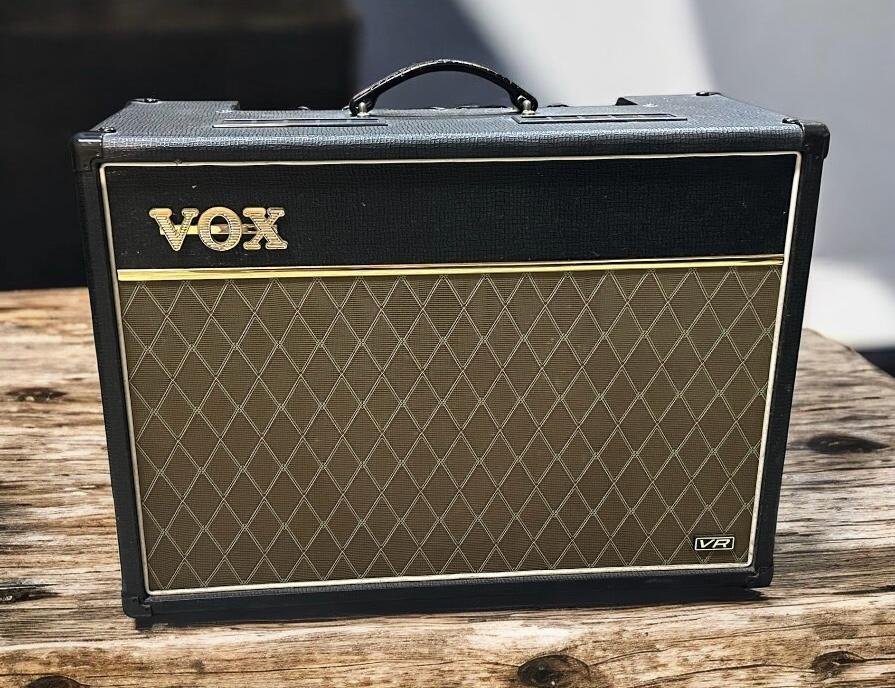 Amplificador VOX AC 15 VR (Valve Reactor) - Potência de Saída: 15 Watts RMS em 8 Ohms. Tecnologia: Híbrido, com circuito Valve Reactor que utiliza uma válvula 12AX7 no estágio de potência para simular a resposta de um amplificador valvulado. 2 Canais (Normal e Overdrive). O canal Overdrive possui um seletor de estilo com 2 modos (OD1 e OD2). Reverb Digital embutido. Alto-falante: 1 x 12 polegadas (12") Celestion Custom Made VX12. Footswitch Jack (para pedal opcional VFS2A). Saídas: Saída para Caixa Externa. Equalização Master: Treble (agudos), Bass (graves). Controles Master: Volume Master, Reverb Master. Dimensões (L x P x A): 60,2 cm x 26,5 cm x 45,6 cm. Peso: 16,4 kg. Amplificador em excelente estado.